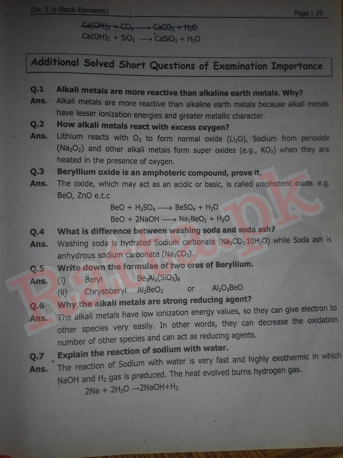 FSc 2nd Year Chemistry Chapter 2 Short Questions